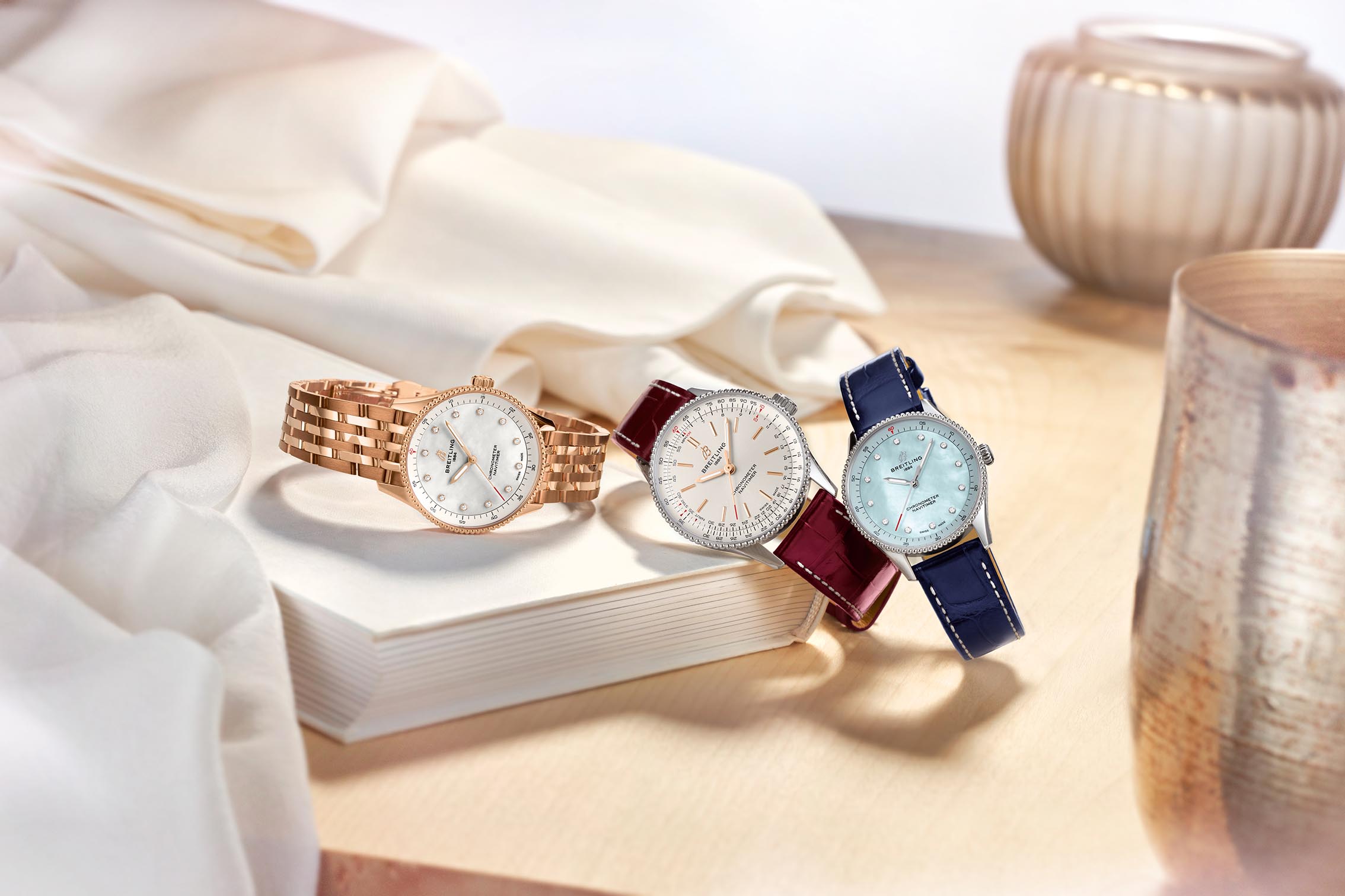 en deux nouvelles petites tailles, qui associent des cadrans en nacre rayonnants, de l’or rouge 18 carats et des diamants synthétiques responsables. Les nouvelles Navitimer 36 et 32 font leur apparition dans la nouvelle campagne NAVITIMER – FOR THE JOURNEY incarnée par Charlize Theron.